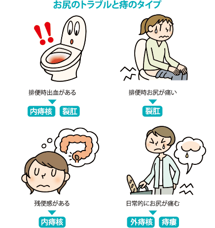 | 痔ろう | ・病気の元になるろう管ができて、炎症・化膿をおこした場合。 |